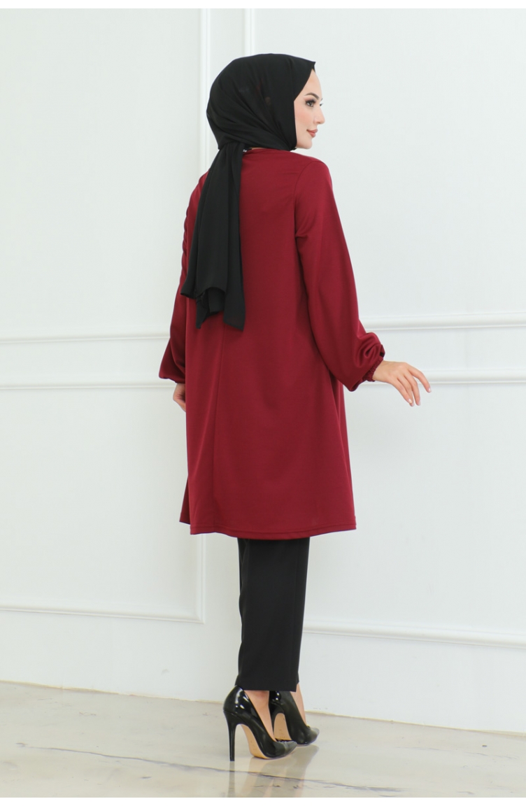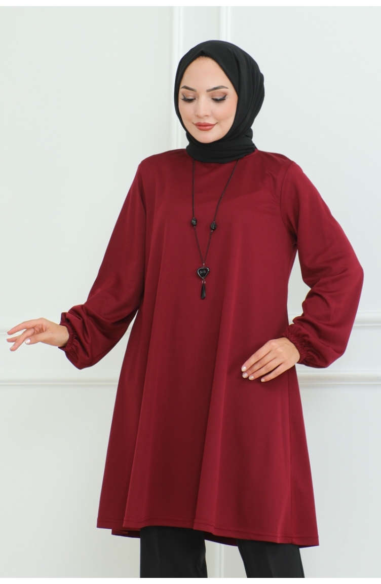 Bordo renktedir. Krep örme kumaş. Sade. 4 Mevsim tercih edebilirsiniz. Büyük beden seçeneği mevcuttur.