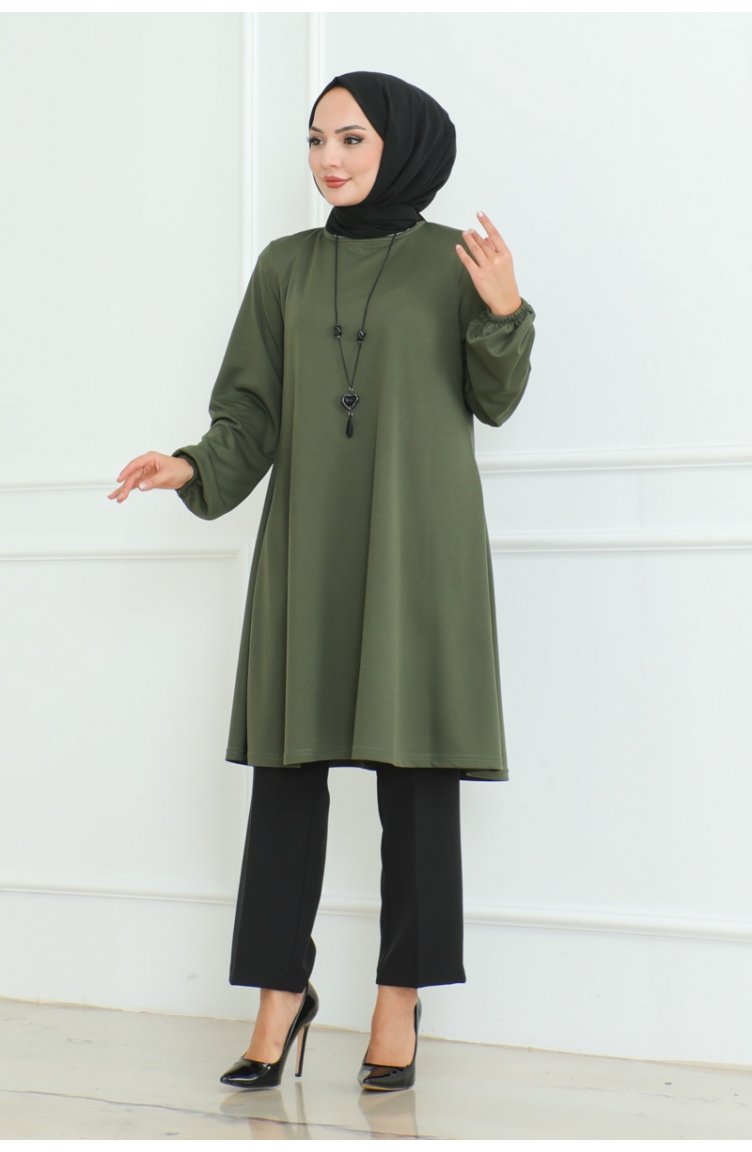 Haki renktedir. Krep örme kumaş. Sade. 4 Mevsim tercih edebilirsiniz. Büyük beden seçeneği mevcuttur.